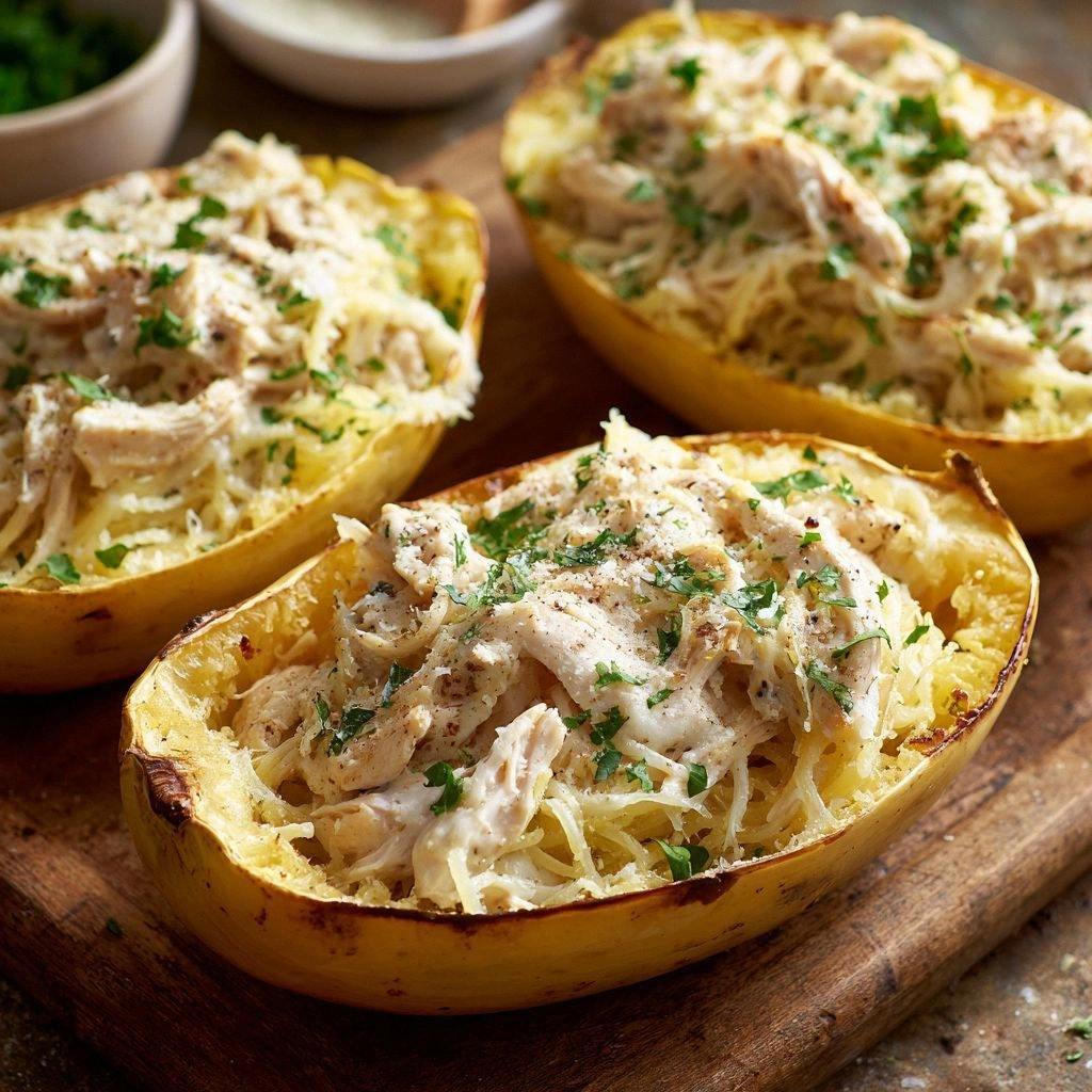 Picture this: a golden, tender spaghetti squash nestles in a crisp oven‑baked boat, the inside coated in a velvety Alfredo that glistens like a fine wine. The sauce, a silky blend of cream, butter, and Parmesan, clings to every strand, turning the squash into a creamy canvas. The breadcrumb topping, toasted to a golden brown, adds a satisfying crunch that breaks the softness in a delightful way. And the aroma—garlic, nutmeg, and a whisper of rosemary—fills the kitchen, making you feel like a chef in a bustling trattoria. I dare you to taste this and not go back for seconds.