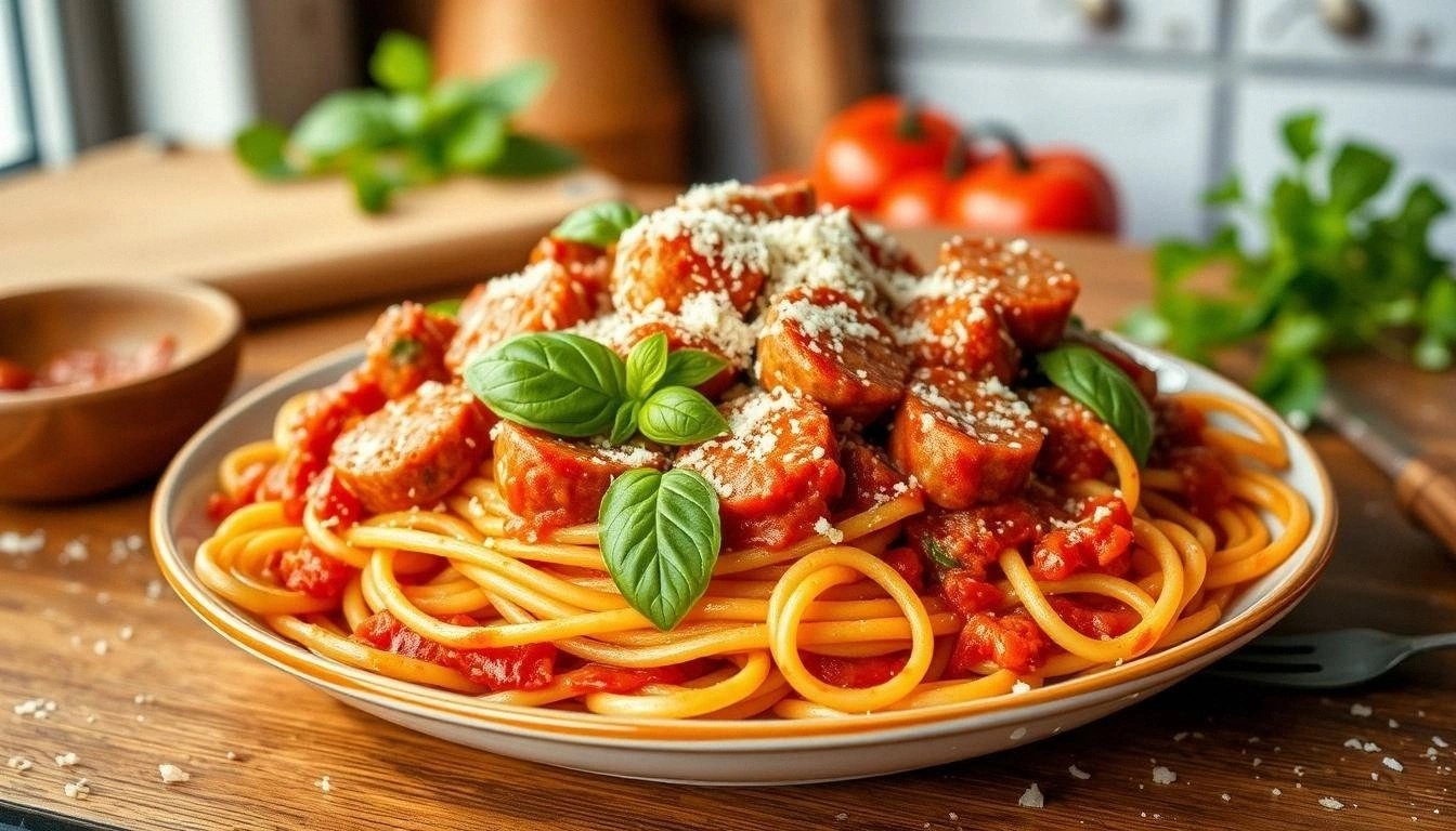 Replace the sausage with crumbled tofu or tempeh, seasoned with Italian herbs. The tofu will absorb the tomato sauce, creating a hearty, plant‑based version that still feels indulgent.